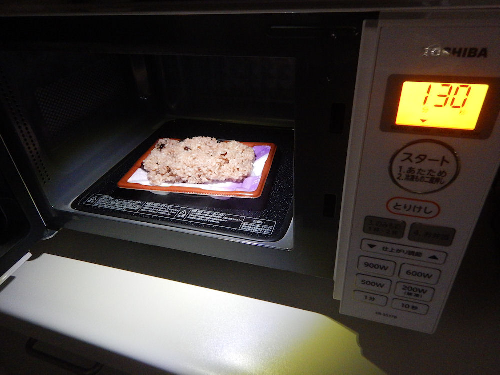 食べる前にラップして、電子レンジの600Wで1分、温めました。