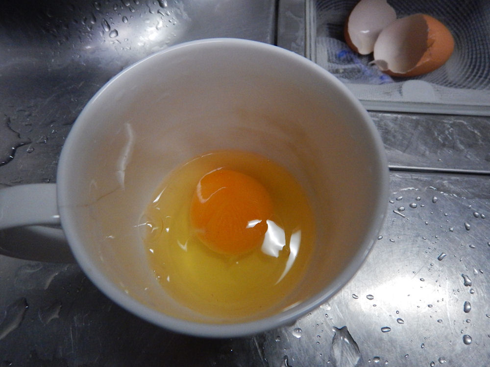 今日の朝食は卵料理!・・・と書いても、卵料理の朝食は多いです。それで先日、買ってきた卵を割ってみたら・・・