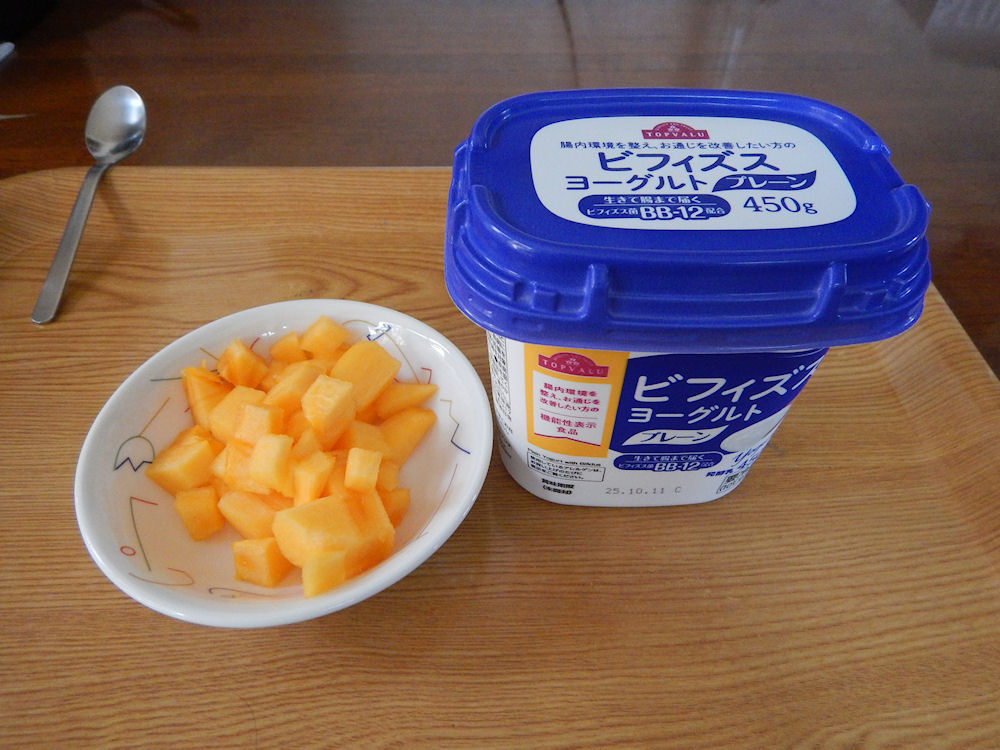 スーパー売っていた柿。そう言えば、今年は、まだ柿を食べていない。。。なので、今日の昼食後は柿を食べる事にしました。それだけでは面白くないのでヨーグルトをプラスして美容効果アップ!