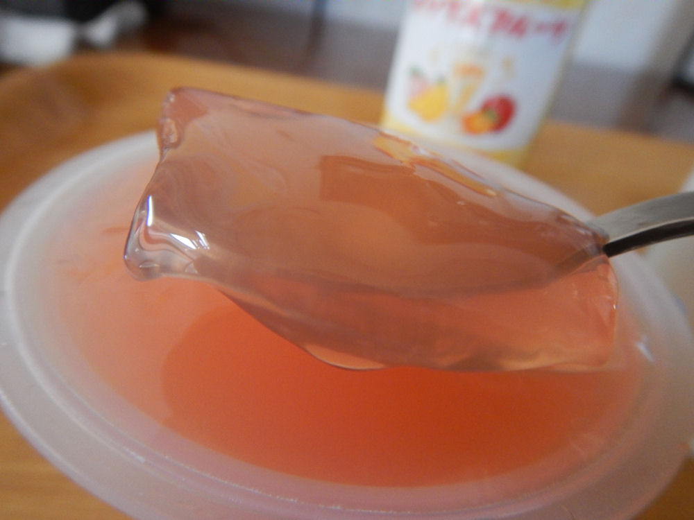 「ほろよい(ミックスフルーツ)」なので、デザート感覚で飲む事しました。スーパーでカットフルーツを買って食べても良かったけど、食べたいカットフルーツが無かったので、フルーツ・ジュレを買いました。