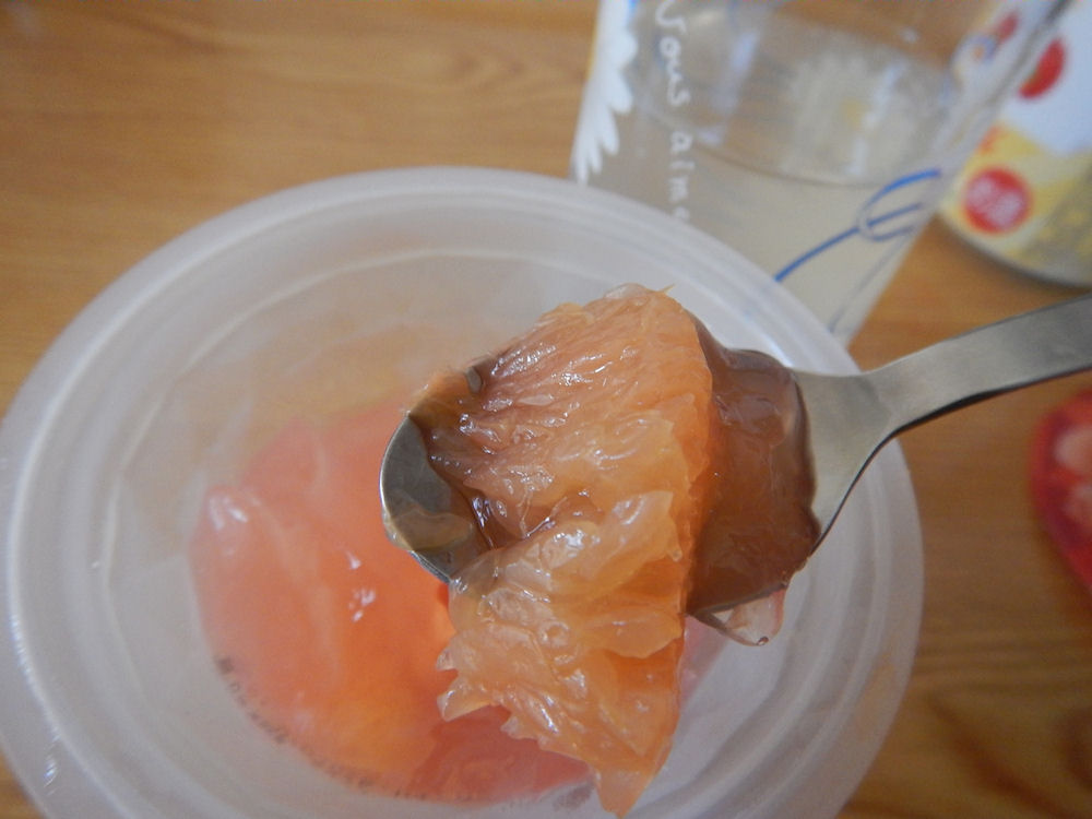 ピンクグレープフルーツジュレを食べる