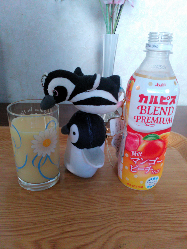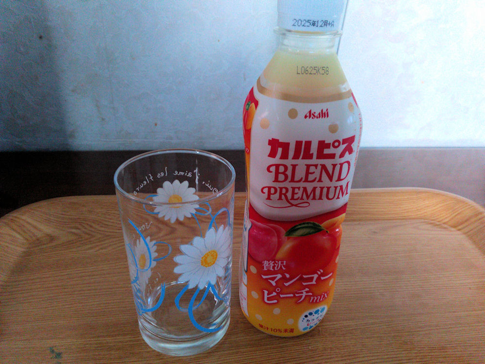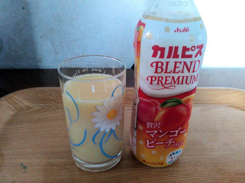 家に帰ってから、アサヒ飲料のサイトを見たら、このカルピスの贅沢マンゴーピーチmixは7月15日に発売の新商品なのですね。