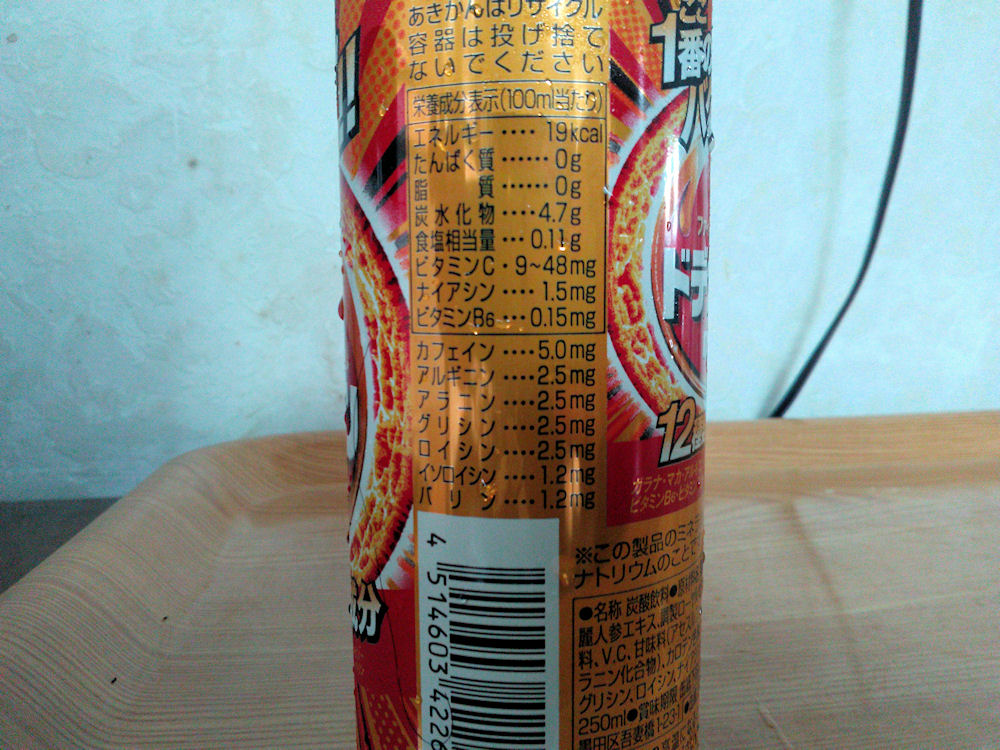 ただ、調べてみたら、1回あたり50mgから100mgぐらいの量が目覚めに良いそうなので、ドデカミンはカフェインと言うより、炭酸の刺激で目が覚めるかも知れないです
