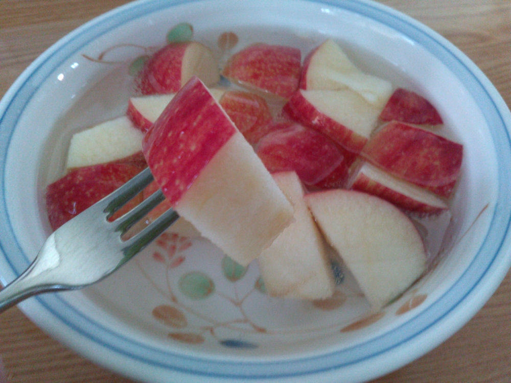 私はリンゴを食べる時は、いつもよく洗ってから、皮のまま食べますよ。