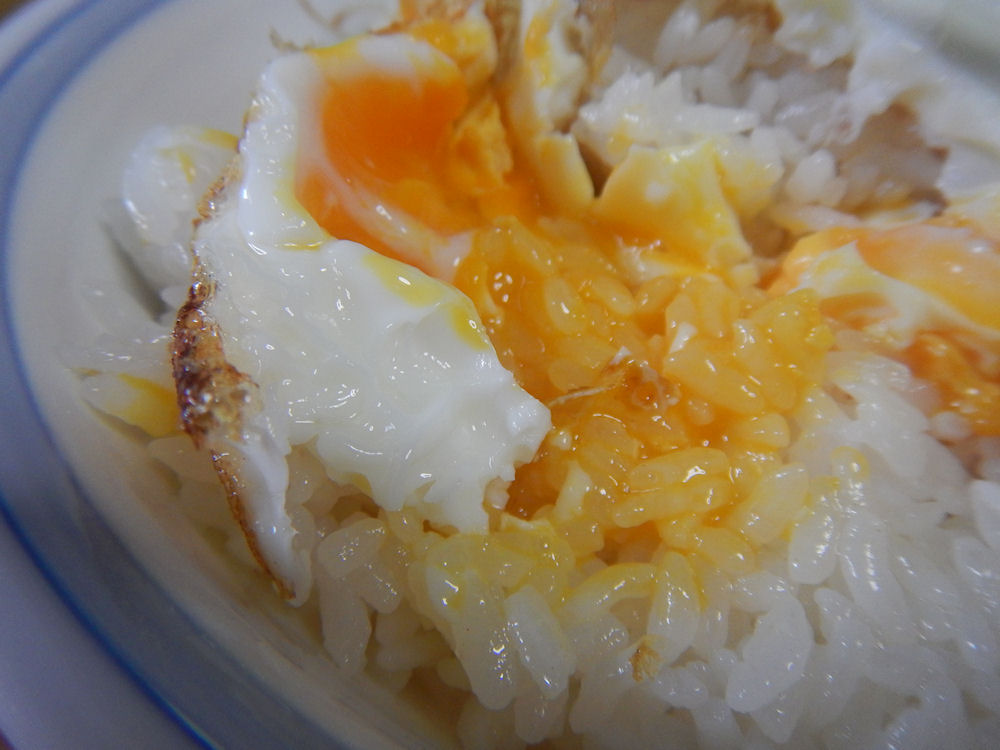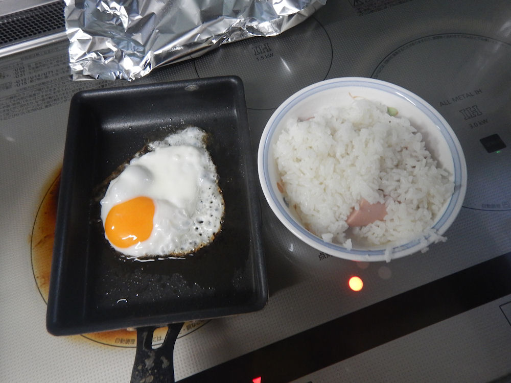 今朝の朝食は目玉焼き。最初は両面焼きにしようと思ったjけど。黄金ライスで食べたい!ので、片面焼きにしました!
