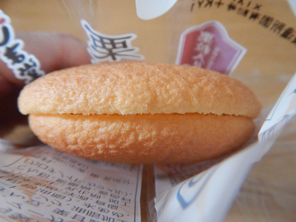 あわしま堂によると「新鮮な卵をたっぷり使用した生地で、栗粒入りの口どけのよい栗風味クリームをサンドしました。」という栗ブッセ。