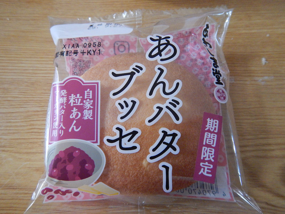 あわしま堂によると「発酵バター入りマーガリンを使用した自家製粒あんを、ふんわり生地で挟みました。」