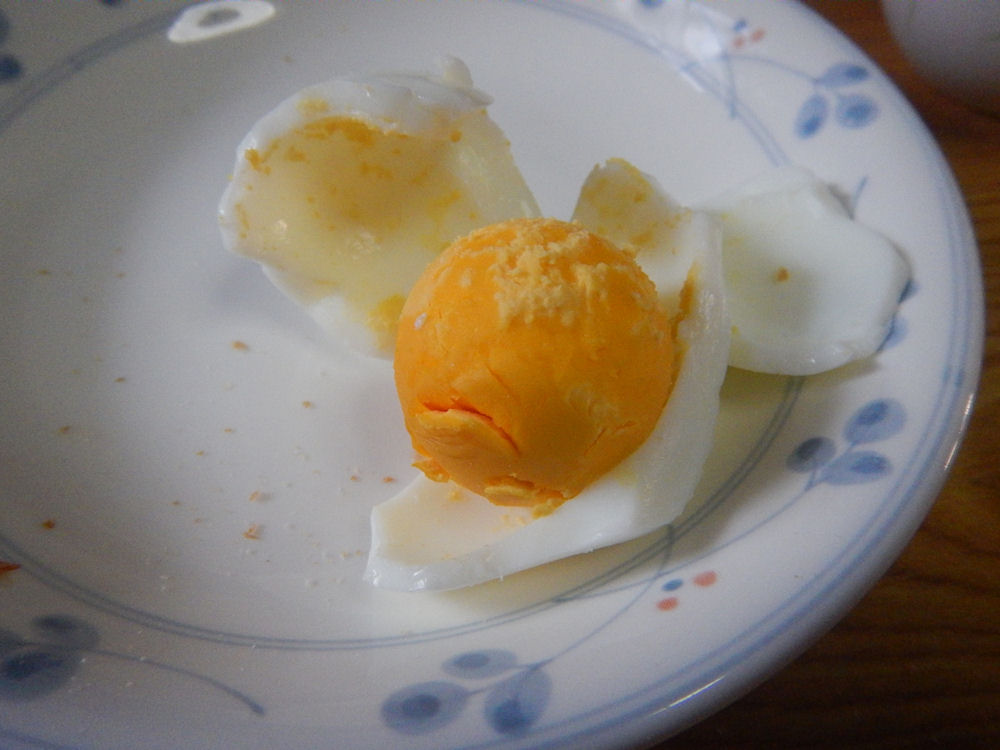 いつもの、ゆで卵は、白身と黄身を一緒に食べるけど、今日は、最初に黄身だけ食べました。