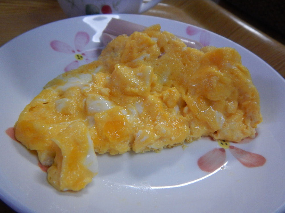 朝食はスクランブルエッグだけど