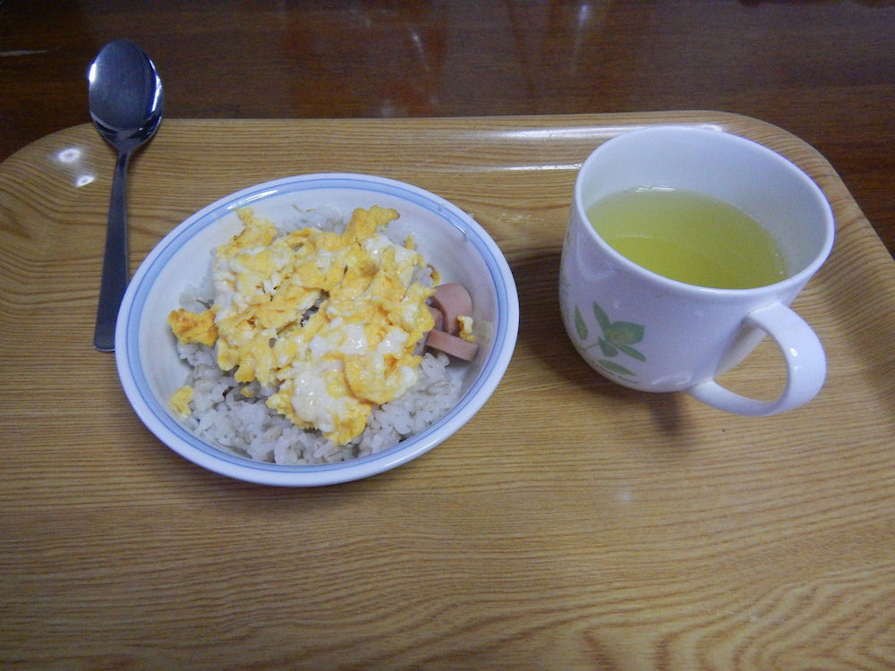 たまご粥の朝食を食べます