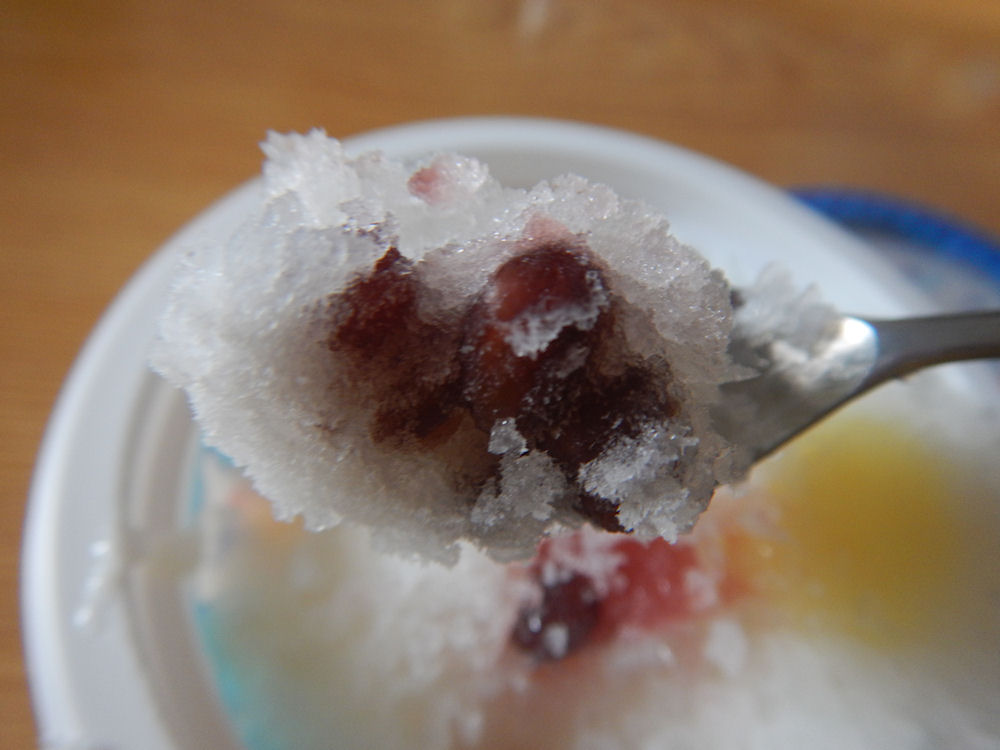 スプーンで食べようとすると、硬い氷。食べる時は、少し力が、いります。